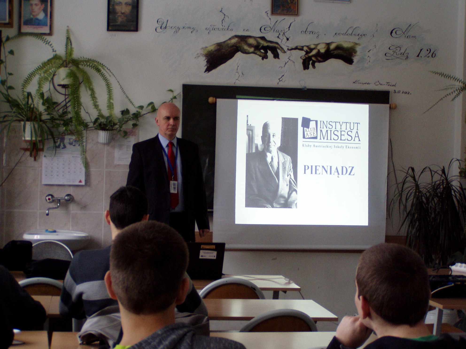 17 stycznia 2013 roku w Przasnyszu odbyła się lekcja ekonomii skierowana do uczniów Technikum Ekonomicznego w Przasnyszu. W trakcie lekcji dochodziliśmy, dlaczego pieniądz to towar, dlaczego jest „powszechnie akceptowalnym środkiem wymiany”, na czym polega wymiana czym jest wartość. Śledziliśmy również historię pieniądza i przypadki jego psucia. Najwięcej zainteresowania wzbudziły dawne monety, a zwłaszcza złota pięciorublówka Cara Mikołaja Imperatora Wszechrusi. Następnym razem będzie kreacja pieniądza